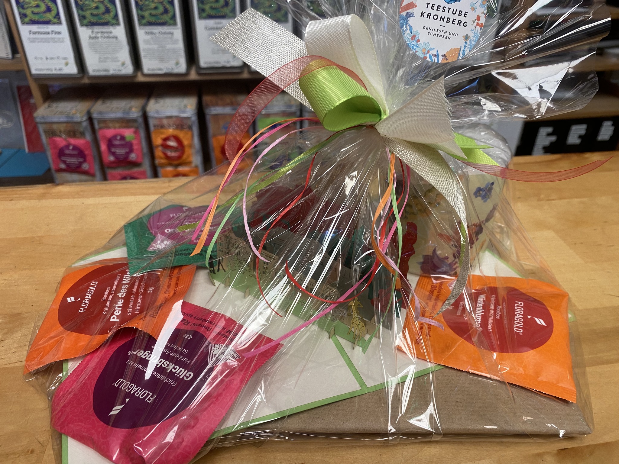 In der Teestube Kronberg finden Sie eine große Auswahl an Geschenkideen rund um den Tee. Unsere Geschenksets werden liebevoll von Hand zusammengestellt – mit feinen Tees, passenden Accessoires und kleinen Extras wie Pralinen oder Kerzen.
